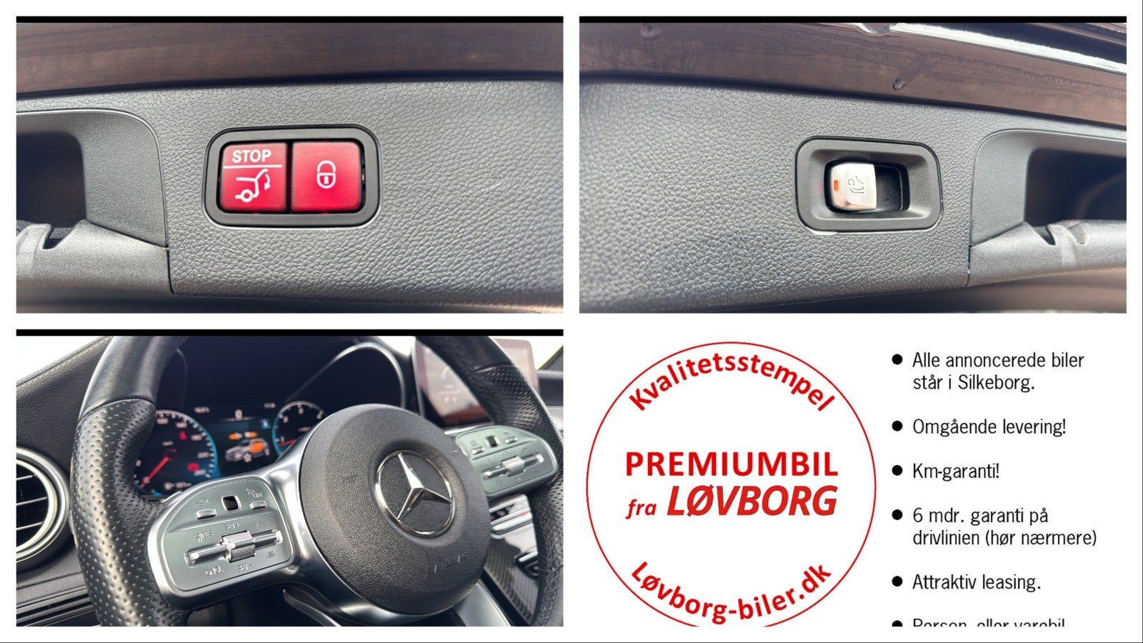 Grafitgrå Metallic m/Sort Læder · AMG-Line Interiør · AMG-Line Exteriør · Panorama El-Glassoltag · Elektrisk Sæde Indstilling Foran m/Memory Funktion · Head-Up Display · Aktiv Afstands-Assistent Distronic · Air Body Control · El-Svingbar Anhængertræk · Multibeam LED Lygter · 20” AMG-Alufælge · Park-Pakke m/360” Kamera · MBUX Multimediasystem · Keyless-Go Komfort-Pakke · Advanced Komfort-Pakke · Trinbretter i Alu. Optik m/Gummipropper · Smartphone Integration · Apple Carplay · Aktiv Park-Assistant m/Parktronic · Fører Assistant-Pakke · Styre-Assistent · Pre-Safe System · Knæairbag · Harddisk Navigation · Vejskiltevisning-Assistent · 9G-Tronic · Fulddigital Instrument Display · Digital Radio · Indbrud- og Tyverialarm Anlæg (EDW) · Anhængerstabilisering m/ESP · Klimatiseringsautomatik Thermatic · Varmedæmpende Mørktonede Ruder · Varme-/Lyddæmpende Akustik-Ruder · Hands-Free Access · Ambientebelysning · Media-Display · Sædevarme Foran · Keyless-Go · Elektrisk Bagklap · Chrom-Pakke Exteriør · I-Size Børnebeslag · Dynamic Select · High-End Assistent-Pakke · High-End Lys-Pakke · Business-Pakke · High-End Infotainment-Pakke · High-End Park-Pakke · Aktiv Vognbane Assistent · Spejl-Pakke · Night-Pakke · Multifunktions Sportsrat i Nappalæder · Ratvarme · 4-Vejs Lændestøtte · Telefon-Antenne · GPS-Antenne · Aut. Nedbl. Af Spejle · Kommunikationsmodul (LTE) · Adaptiv Fjernlys-Assistent Plus · Indvendig Lys-Pakke · Sort Lofthimmel · Trådløs Opladning · Touchpad · MB Nødopkaldssystem · Dæktryks Kontrol · Udstigningslys · Opvarmet Sprinkleranlæg · Automatisk viderekørsel ved Kø · Fodgænger Beskyttelse · Adaptiv Bremselys · Sorte Interiørlister · Indstigningslister m/ Mercedes-Benz Logo · M.M.