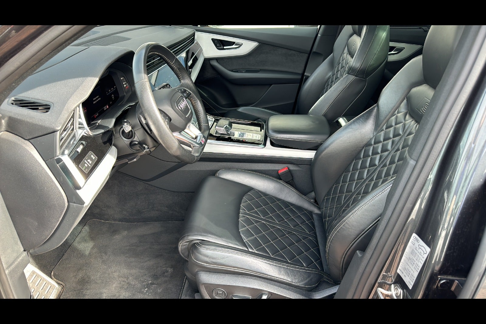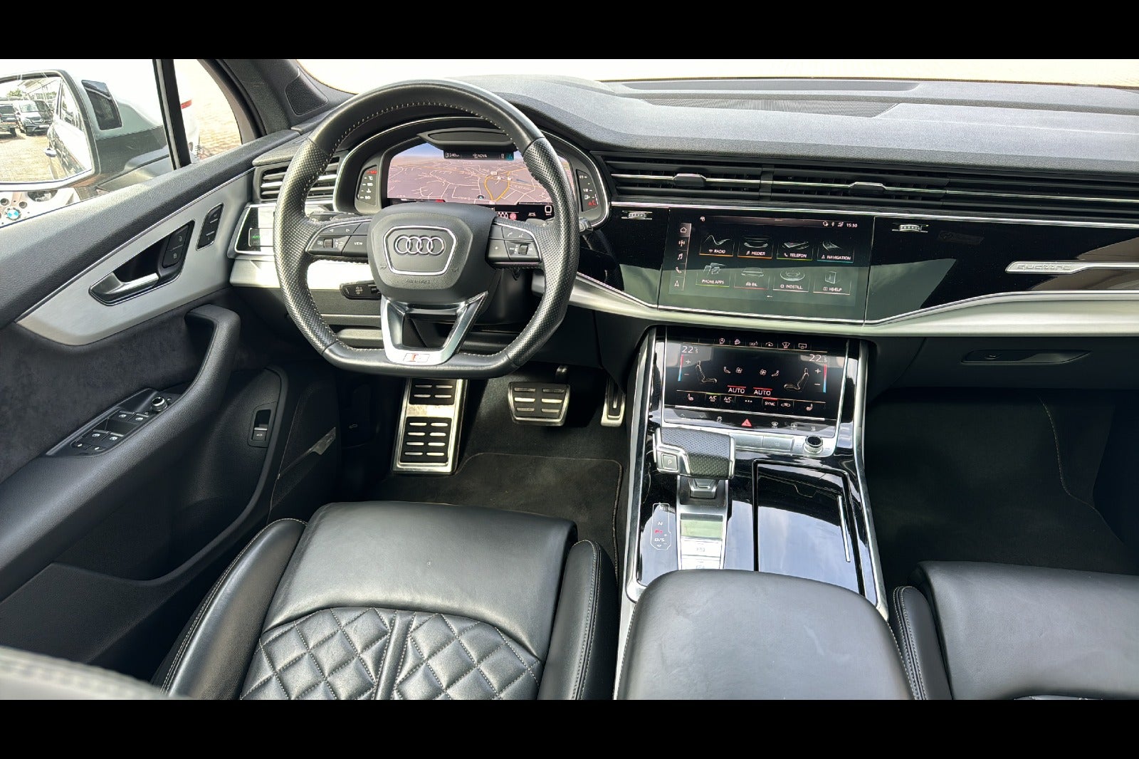 Daytonagrå Perleffekt m/Sort Valcona Læder · S-Line · Assistent-Pakke Tour · Assistant-Pakke City · Panorama El-Glassoltag Hæve/Skyde · 22” Alufælge · Elektriske Sæder foran m/Memory · Adaptiv Fartpilot · Afstands-tempomat · Motor-/Kabinevarmer · Fyr m/Fjb. · Laser Lys Matrix LED Lygter m/Adaptiv Kurvelys · Parkerings-Pakke m/360’ Kamera · MMI Navigation Plus m/MMI Touch · El-Svingbar Anhænger Træk · Bose Premium Sound System m/3D-Klang · Head-Up Display · Adaptiv Air Suspension – Sport (Luftundervogn) · 4 Hjuls styring ( Styring På Bagaksel ) · Sædevarme For og Bag · Mørktonede Tuder i Bag · Tagrails · Ambientebelysning · Fulddigital Kombiinstrument · Komfortnøgle/Keyless-Go · Regnsensor · Lyssensor · El-Klapbare Sidespejle m/Varme · Fjernlys-Assistent · Garageport Åbner · Blindvinkel-Assistent · Vognbane-Assistent · Vejkryds-Assistent · Elektrisk Bagklap · LED Baglygter m/Dynamisk Blinklys · Isofix-System · S-Sportssæder Plus · DAB Digital Radio · Bluetooth/Smartphone Integration · Vejskiltevisning-Assistent · Euro 6 · ABS · ESP · Spærrediff. · Servostyrring · Bordcomputer · Multifunktions SportsLæderrat · Indstigningslys LED m/Logo For og Bag · Sort Lofthimmel · 4 Zone Klimaaut. · m.m.