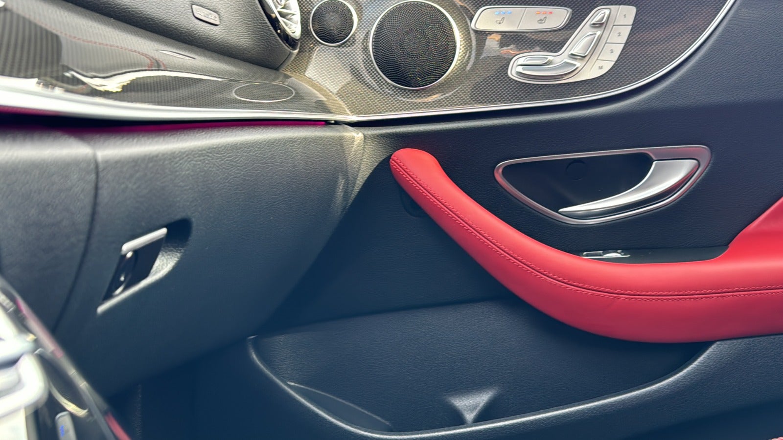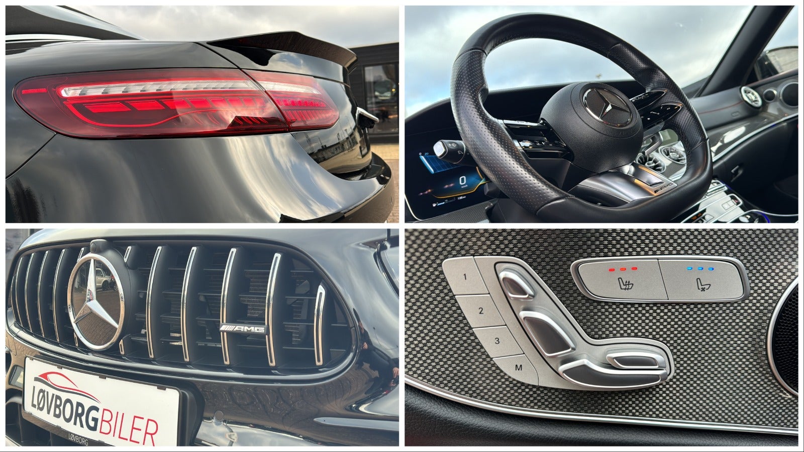 Sort · m/2-farvet Sort/Rød Nappa Læder AMG · Stofkalesche Sort · AMG Line Interiør/Exteriør · AMG Night Pakke · AMG Styling · AMG Performance Læderrat · Sædeklima (Varm/Kold Luft) · Klimaautomatik THERMATIC · AMG Performance · Udstødningssystem · Park-Assistent m/360* Kamera og Bakkamera · Fartpilot · High Performance LED Forlygter · Digital Cockpit · 20” AMG Letmetalfælge · AMG Dynamic Select · Harddisk Navigation · MBUX Multimediesystem · MBUX High End Pakke · EURO 6 Teknik · Apple Carplay · Forsæder El-Indstilb m/Memory · TouchPad m/Controller · Vejskilte Genkendelse Assistent · Ambiente Belysning · Ind- og Udvendige Spejle i Førersiden Automatisk Nedblænd. · AMG Speedshift TCT 9G · AMG Ride Control+ · Digital Radio · Isofix · 4 Vejs Lændestøtte · AMG Fører Pakke · Klapbare Spejle · Kabelfri Ladning af Smartphones · Airbags · USB · AMG Skånekanter · Aktiv Bremse Assistent · Mercedes Nødkaldssystem · Kommunikationsmodul (LTE) til brug for MB Connect Me Tjenesten · Dæktryks Kontrol · Sort Lofthimmel · Kabinelys Pakke · Læder på Instrumentbord og Døre · Fodgænger Sikkerhed · Røde Sikkerhedsseler · Status For Sikkerhedsseler i Instrumenter · Brændstofbeholder med 66 Liter · Business Pakke · Spejl Pakke · Telefon Antenne · GPS Antenne · Nedfældelig Sæderyg Bagtil · Opbevaringspakke · Midterkonsol i Sort Klaverlak · Vind-Skjold · Kop-Holder m.m.