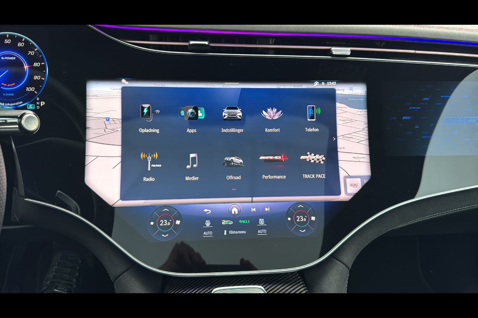Hightechsølv Metallic m/Sort/Grå Nappa Læder · AMG Premium-Plus-Pakke · Panorama El-Glassoltag Skyde/Vippe · AMG Ride Control Plus (Luftundervogn) · Adaptiv Fartpilot m/Afstands Assistent Distronic · Head-Up Display · Digital Lys · Burmester 3D Surround-Sound System · Parkerings-Pakke m/360” Kamera · Elektrisk Indstilling af sæder m/Memory · 22” AMG Alufælge · Keyless-Go Komfort-Pakke · Hyperscreen og OLED Passager Display · 4Matic m/Bagakselstyring · Trinbretter i Aluminium m/Gummipropper · MBUX Multimediasystem · Harddisk Navigation Premium · AMG Night-Pakke · Aktiv Park-Assistent m/Parktronic · AMG Performance Sportsrat i Nappa Læder · Varmepumpe · Aktiv Vognbane-Assistent · Aktiv Styre-Assistent · Memory-Pakke · Dynamic Select · Akustisk-Komfort-Pakke · Førerassistent-Pakke Plus · Varmedæmpende Tonede Ruder · AMG-Styling · Smartphone Integration Tlf/Musik Streaming/Navigation · Apple CarPlay · Pre-Safe System · Spejl-Pakke · Airbags · Knæairbag · Aut. Nedbl. af Spejle · 360” Kamera · Sportssæder m/Sædeklima Køl og Varme · Hands-Free Access · AMG Dynamic Plus-Pakke · Ambientebelysning · Elektrisk Bagklap · Klimatiseringsautomatik Thermotronic · Indbrud og Tyverialarm Anlæg (EDW) · Digital Radio · 4 Vejs Lændestøtte · Dæktryks Kontrol · Opvarmet Forrude · Aktiv Vognbane-Assistent · MB Nødopkaldssystem · Lyd- og Varmedæmpende Infrarød reflekterende Ruder · Mange Digitale Tjenester via Mercedes Kommunikationsmodul (5G): AMG Track Pace · Live Trafik Info · m.m. · AMG Drivers-Pakke · AMG Night-Pakke II · El-Klapbare Sidespejle m/Varme · Adaptiv Fjernlys-Assistent Plus · Vejskilte Genkending · USB-Pakke Plus · AMG Midterkonsol i Carbon · TV-Tuner · Sort Lofthimmel · Opvarmet Sprinkler Anlæg · Indvendig Lys-Pakke · Aktiv Ambientebelysning · Kabine Overvågning · Trådløs Opladning af Mobiltlf. · Fingeraftryks Sensor · Ratvarme · Undervogn m/Adaptiv Dæmperfunktion · Lyd-optimerede Dæk · Automatisk Viderekørsel ved Kø · AMG-Interiørlister i Carbon · Udstigningslys m/Mercedes Logo · Park-Pakke m/Remote-Parkeringsfunktion · Energizing Air Control Plus · m.m.