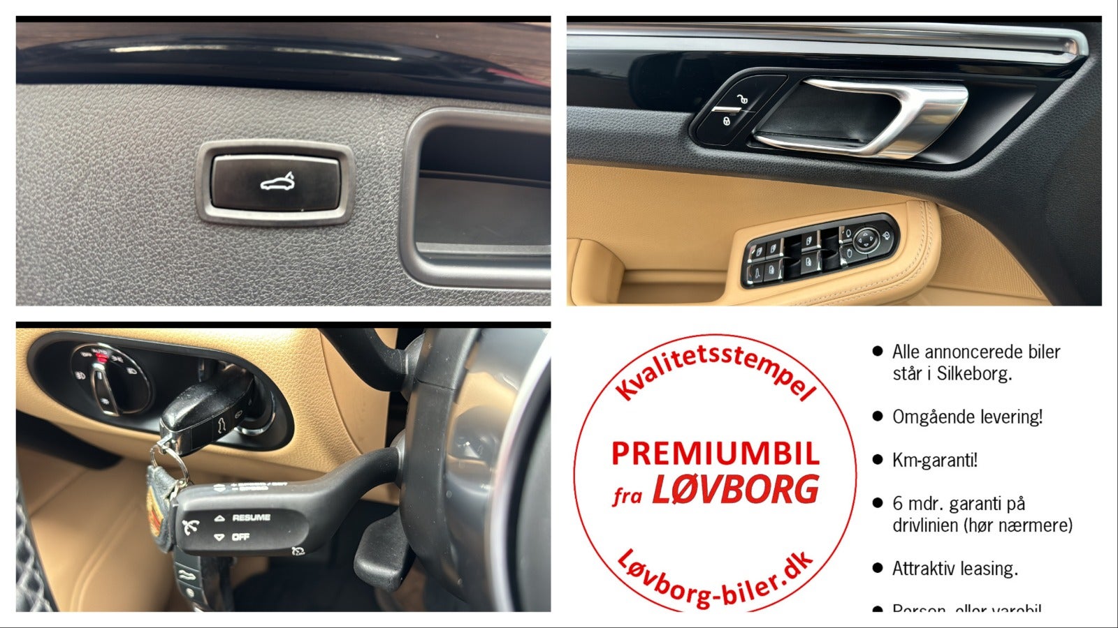 Tiefsort Metallic m/Læderpakke Bi-Color Sort/Luxorbeige · Panorama El-Glassoltag · Park-Assistent For/Bag Inkl. Bakkamera · Bi-Xenonlygter · PDSL · Tonede LED Baglygter · Navigation (PCM) · Klimaanlæg 2-zoner · Fartpilot · Eksteriør Pakke Sort-Højglans · Touchscreen · El-Sidespejle · Fjernlys Assistant · Multifunktions Læderrat · Regnsensor · Lyssensor · Lane Assistent · Sædevarme For · Lændestøtte · El- Indst. Sportsæder · Dæktrykskontrol · Start/Stop Automatik · Tuner/Radio/CD-Spiller · El-Bagklap · Isofix · Partikelfilter · Paddle Ratgearskifte · Mørktonede Ruder Bag · Afdækning Bagagerum · Automatisk Nedbl. Spejl · Home Link (Garage Åbner) · Bluetooth · USB · Tagræling Sort · 21” 911 Tubo Alufælge · Tågelygter · Armlæn · Airbags · 75 l Brændstoftank · m.m.