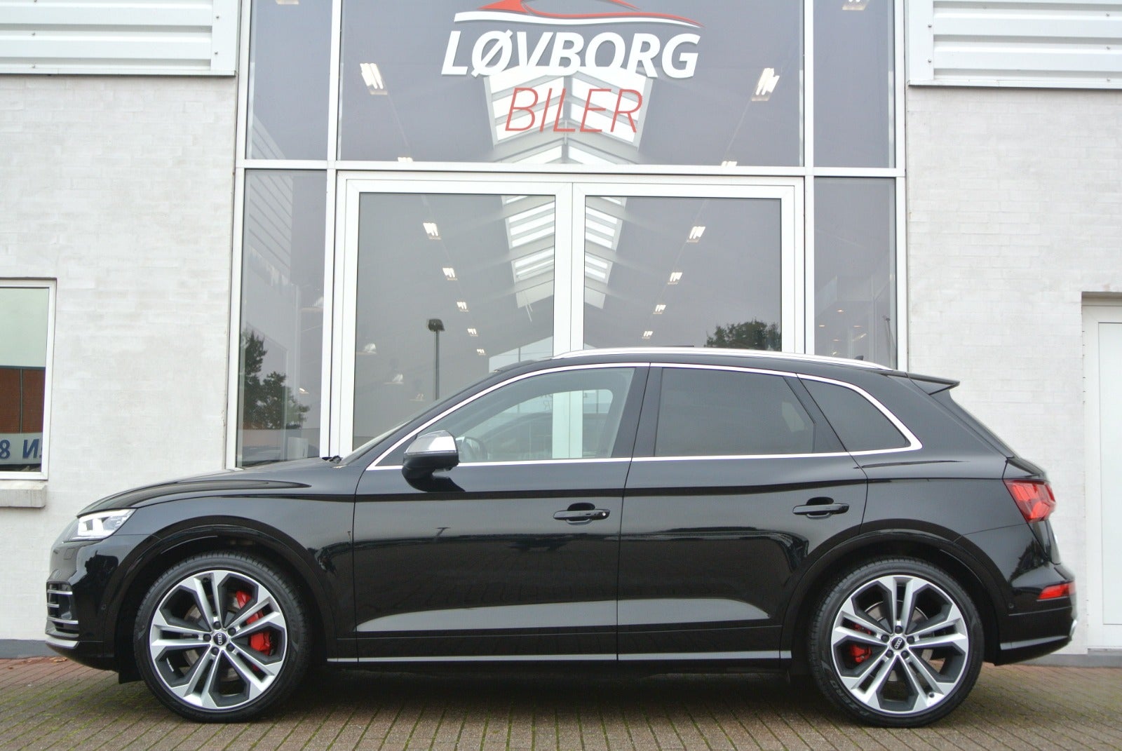 Mythossort Metallic m/Sort Fein NappaLæder m/Rautensyninger · S-Line · Panorama El-Glassoltag · MMI Navigation Plus m/MMI Touch · Audi Matrix-LED Lygter m/Dynamiske Blinklys · Adaptiv Fartpilot ACC Plus · Bang & Olufsen Premium Sound System m/3D Klang · Adaptiv Air Suspension (Luftundervogn) m/s-Specifik Afstemming · Elektrisk Svingbar Anhængertræk · El-Sports Sæder m/Memory · 21" Alufælge i 5 Dobbelt Egert Design · Park/Styre-Assistent · Vognbaneskift-Assistent · Vognbane-Assistent · Vejskiltevisnings-Assistent · Lyssensor (Comming Home · Leaving Home) · Fjernlys-Assistent · ESP · ABS · ESC · Lys- og Regnsensor · Bjergkørsels-Assistent · Dæktryks-Kontrol · City-Nødbremse Funktion · Bremse-Assistent · Bluetooth/Tlf/Musik m/Sprog Genkending · Audi Connect (Nødopkald og Assistance-System) · Digital Radio · El-Klapbare Sidespejle m/Memory og Varme · Sprinkler-Anlæg · Optisk (APS Plus) Parkeringshjælp For + Bag · Komfort-Klimaautomatik 3Zone · Isofix · Komfort-Nøgle m/Bagklap-Styring Åbne/Lukke · Hoved Airbag-System (Sideguard) · Sideairbags i Bag · Start/Stop-Anlæg · LED Baglygter m/Dynamisk Blinklys · Top View Kamera-System · 8 Trins Tiptronic Automat-Gear · Sædevarme For og Bag · Armlæn · 3 Egert Sports Læderrat m/Multifunktion Plus · Fører-Info-System (FIS) m/Farvedisplay · Aut. Nedbl. af indv. Spejl · Tonede Varmedæmpende Ruder · Mørktonede Ruder i Bag (Privacy) · Ambiente Belysning · Fodgænger Beskyttelses-System · Assistent-Pakke Tour · Udstyrs-Pakke Technology Selection · Fralægnings-Pakke · Bagagerums-Pakke · Bordcomputer · LED Kørelys · Sports-Pakke · Apple-CarPlay · Android-Auto · Tag-Rails · Trådløs Opladning til Smartphone · Kurvelys · El-Lændestøtte · Blindvinkel-Assistent · Fulddigital Kombiinstrument · 360" Kamera · m.m.