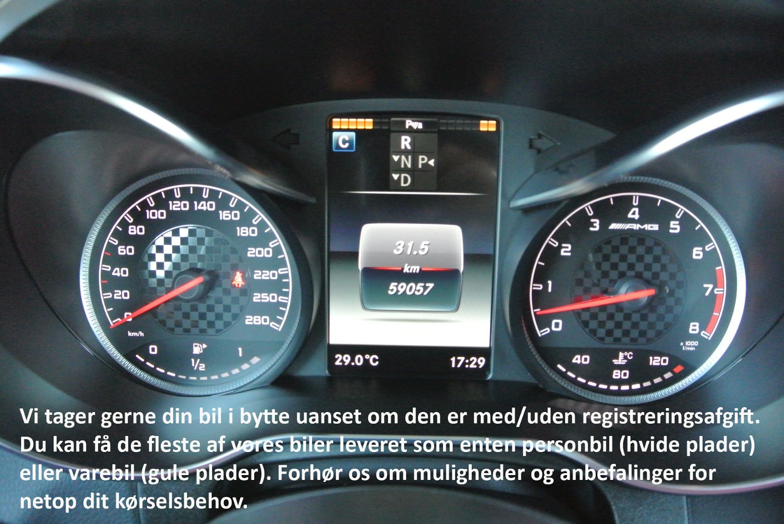 BrilliantSort m/Sort Læder · AMG-Line interiør og Exteriør · El-Indstilling af Sæder m/Memory Funktion · Command Navigation Online · LED Intelligent Lys System (ILS) · Burmester Surround Soundsystem · Afstands Pilot Distronic m/Styre Pilot · Air Body Control (Luftundervogn) · 20" AMG Alufælge · Alu. Trinbrætter m/Gummipropper · Keyless-Go Start-Funktion · Aktiv Park-Assistent m/Parktronic · Bakkamera · Aktiv Vognbane-Assistent · Blindvinkel-Assistent · Pre-Safe Plus · Førerassistent-Pakke Plus · Styre-Assistent · Vejkryds-Assistent · Aut. Nedbl. af Spejle · Aktiv Bremse-Assistent m/Vejkrydsfunktion · Pre-Safe Bremse m/Fodgængergenkending · Knæairbag · GPS-Antenne · Telefon-Antenne · Bloetooth/Tlf/Musik · Dobbelte Kopholdere · MB Nødopkaldssystem · Multifunktions Sports Læderrat m/Gearskifte · Ratvarme · Forb. for Live Trafik Info. · Regnsensor · Dæktryks Kontrol · MB Connect Me Tjenesten · El-Klapbare Sidespejle · Vejskiltevisnings-Assistent · Sort Loftshimmel · OttoPartikelfilter · Klimatiseringsautomatik Thermatic · Diamantgrill · Adaptiv Fjernlys-Assistent Plus · Udstigningslys · Interiørlister i Sort Klaverlakoptik/Alu. · Elektrisk Bagklap · AMG-Styling · DVD-Player · Sædevarme for · Varmedæmpende Tonede Ruder · Isofix · 66L Tank · Indvendig Lys-Pakke · Adaptiv Bremselys · Spejl-Pakke · Night-Pakke · Chrome-Pakke Exteriør · Euro 6 Teknik · AMG Dynamic Select · 4-Vejs Lændestøtte · Fodgængerbeskyttelse m.m.
